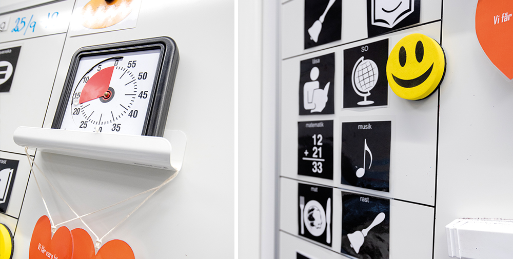 – Vi har lagt jättemycket tid på att utbilda personalen. Vi har ett gott samarbete med SPSM (Specialpedagogiska skolmyndigheten), som har varit på plats och bollat idéer och tankar i samband med ritandet och byggandet av skolan. Men de har också varit här efter att skolan var klar och hjälpt oss med möblering i klassrummet och handlett oss i frågor kring den fysiska lärmiljön.