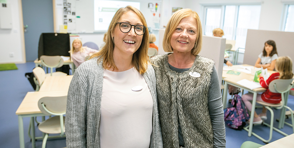 Caroline Fondberg (till vänster) och Maud Pettersson arbetar i samma hemvist på skolan. Foto: Magnus Glans