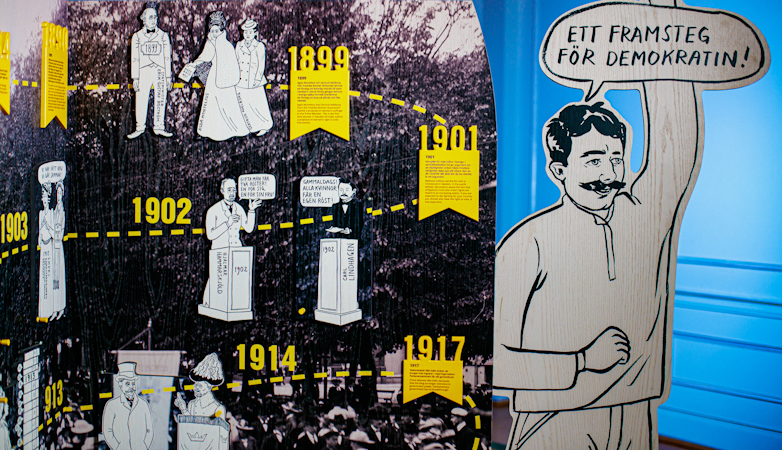 Utforska den interaktiva tidslinjen från 1809 till i dag. Den innehåller viktiga rörelser, skeenden och demokratikämpar som påverkat demokratin framåt till våra dagar.