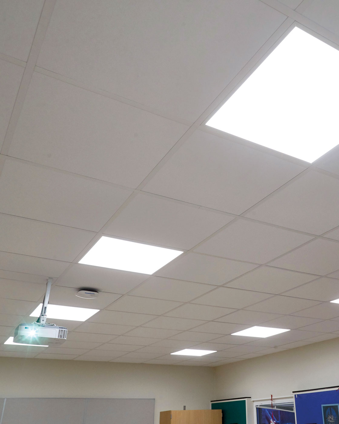 Förutom satsningarna på att förbättra ljudmiljön har skolan satsat på belysningen i klassrummen. I taket har det installerats led-plattor som har gett ett jämnare och behagligare ljus.