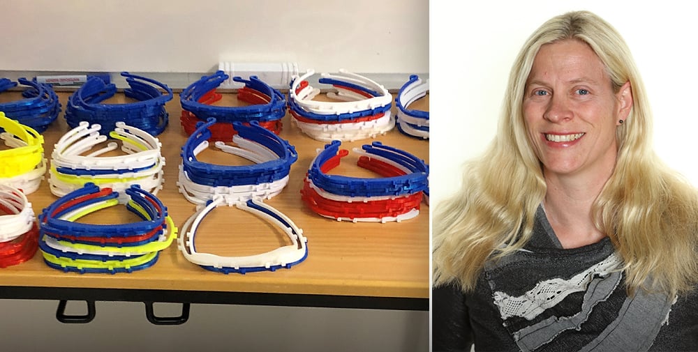 – Då ställde jag frågan till tekniklärarna om vi inte också kunde använda våra stillastående 3D-skrivare för att skriva ut visirhållare, säger Elisabeth Knudsen.