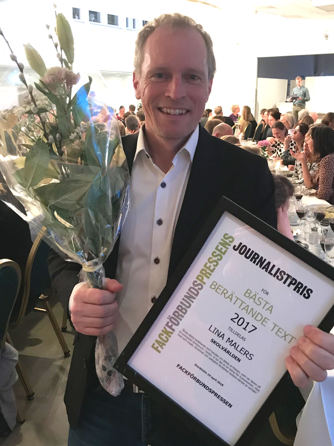– Vi var väldigt glada bara över att vara nominerade, lärare är värda all uppmärksamhet de kan få. Att reportaget sen tog hem priset i den här kategorin gör det hela så klart ännu roligare, säger Jonas Fond.