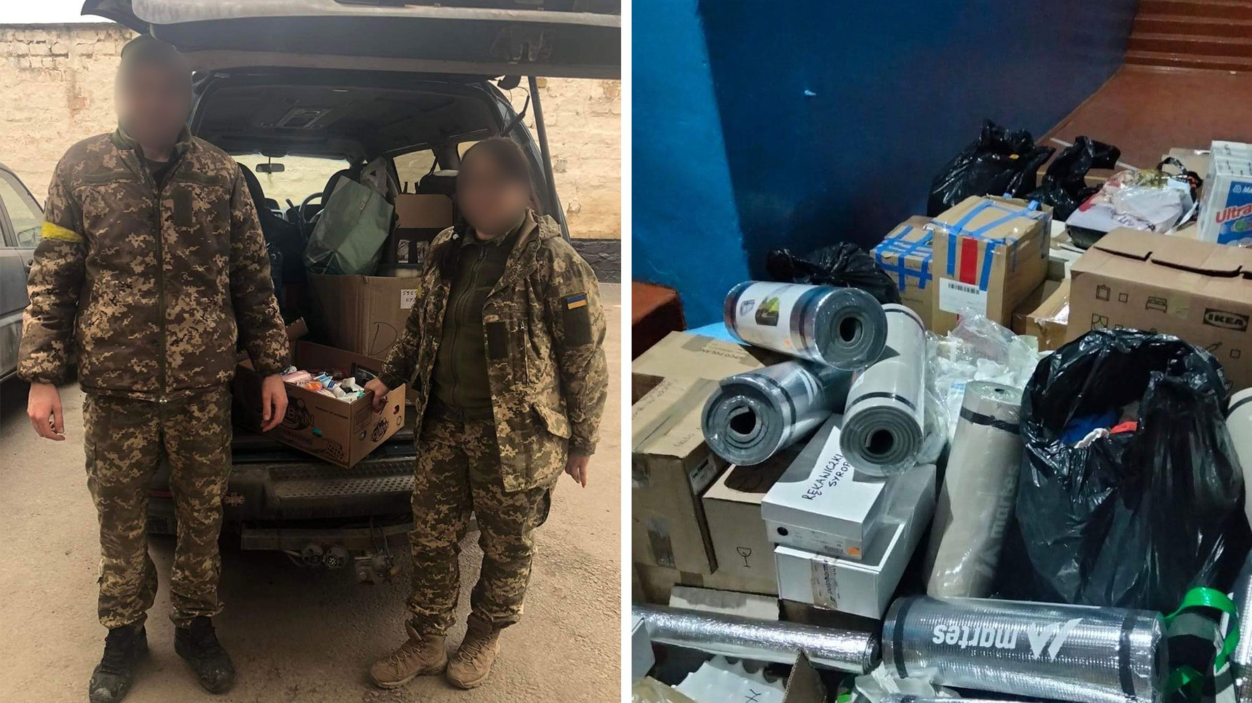 Militaren i Ukraina hjälpte Maksym Kornilov att föra in allt han hade samlat ihop till de krigsdrabbade i Ukraina. Foto: Privat