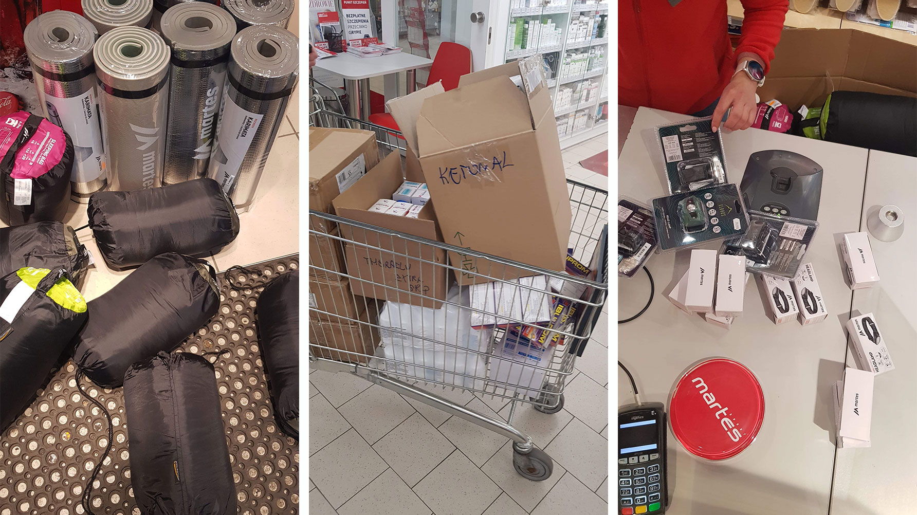 Eftersom det var billigare i Polen att handla sovsäckar, förstahjälpenartiklar, pannlampor och annat som efterfrågades i Ukraina så handlade Maksym Kornilov det sista där. Foto: Privat