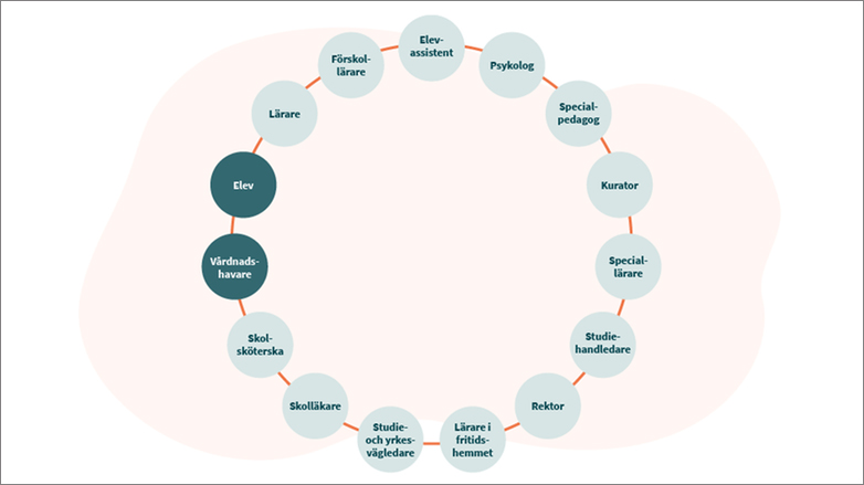 Illustration på alla professioner och personer som kan behöva involveras i utredningen om särskilt stöd, enligt skolmyndigheterna.