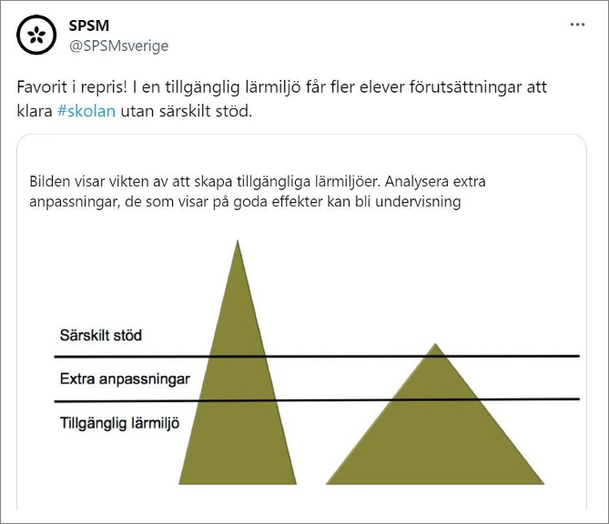 Även Skolinspektionen har varit glasklara med vad som gäller: God undervisning för elever med neuropsykiatrisk funktionsnedsättning (npf), går ut på att erbjuda hjälpmedel som digitala verktyg, hörselkåpor, skärmar och stressbollar. Läraren ska differentiera sin undervisning utifrån elevernas förutsättningar, intressen och kunskapsnivåer och elever ska få ”visa upp sina kunskaper på olika sätt.” ”Tillgänglig lärmiljö” har blivit ett mantra. Något särskilt stöd har inte varit på tapeten uppifrån, om man säger så.