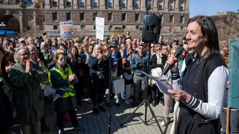 Maria Wimans tal på Mynttorget rev ner stora applåder och bifallsrop. Foto: Sven Lindwall