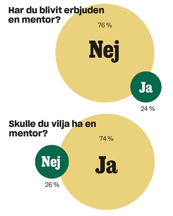 De som svarade att de inte hade blivit erbjudna en mentor fick frågan om de skulle vilja ha en mentor. En enkät skickades ut av Lärarförbundet till 3228 nyexade lärarstudenter som hade VT 2019 som examinationstermin. 988 individer svarade vilket gav en svarsfrekvens på 31 procent. Enkäten genomfördes hösten 2019.