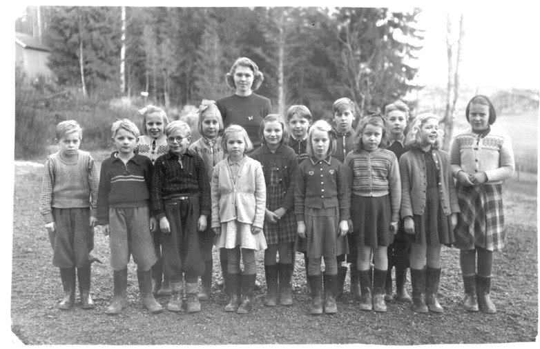 Inez Degerman och den första klass hon undervisade, åk 3–4 HT 1949.