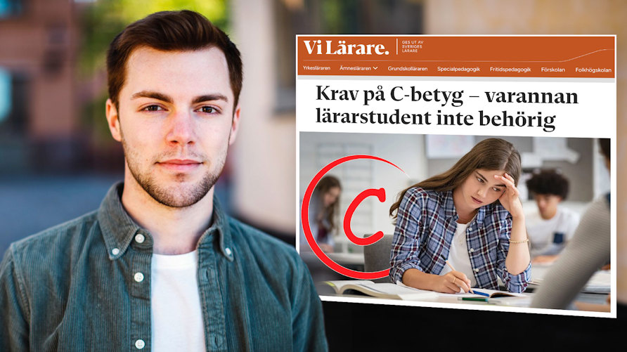 Adam Kedert, ordförande för Sveriges Lärarstudenter, är positiv till det skärpta C-kravet på lärarutbildningen.