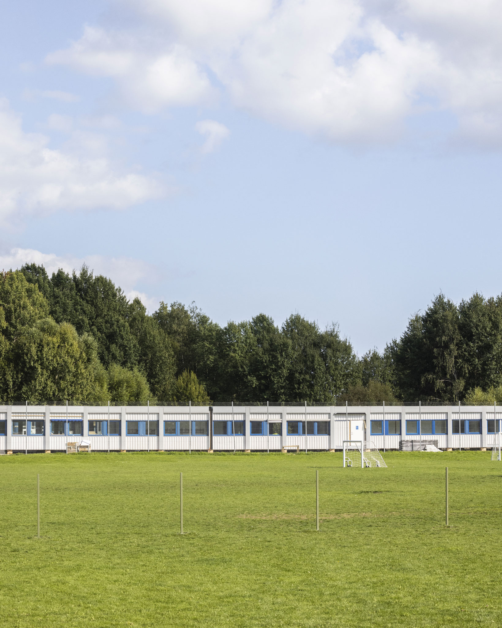 Verksamheten har flyttat in i modulhus runt fotbollsplanen på Rosvalla.