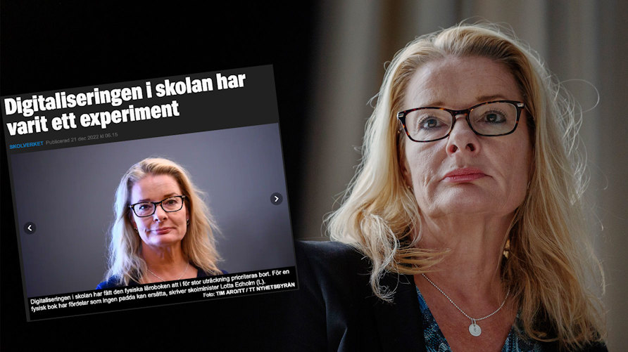 ”Det har funnits en okritisk hållning till digitalisering, där det slentrianmässigt ansetts som bra oavsett innehåll. Nyligen efterlyste EU-parlamentets kulturutskott fler tv-spel i skolan. Men den nya regeringen vill i stället se fler skolböcker”.