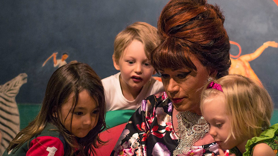 – Dragshow är glitter och glamour och ett sätta att göra saker festliga, uppklädda. Det jag antagligen är för barnen är en vuxen som är klädd i väldigt glittriga kläder. Det kanske är lite roligare att ha en glamourös sagoläsare än en clown. Dragshow är lek, säger han.