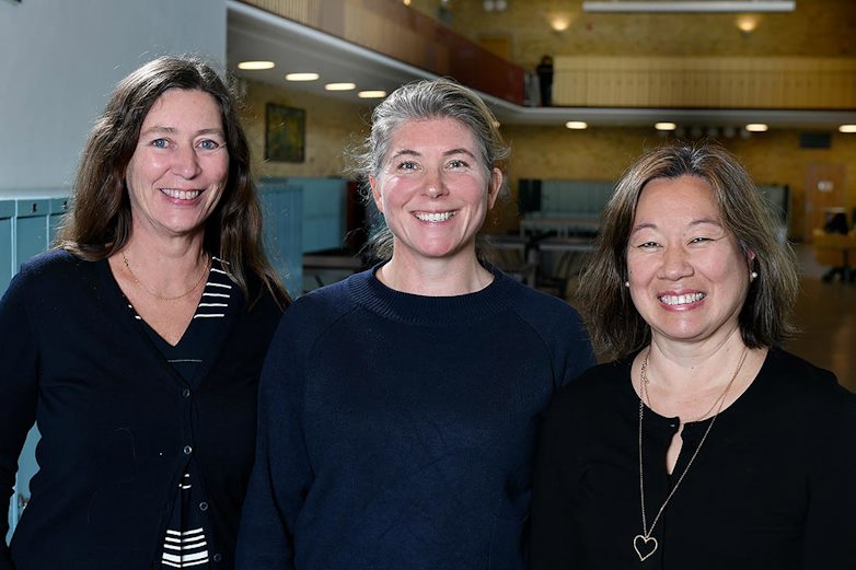 Hökarängsskolans biträdande rektor Charlotta Lindqvist (till vänster), menar att lärare som Maria Andersson och Anna Adrian (till höger) varit en förutsättning för att lyfta pojkarnas resultat. Foto: Maria Östlin