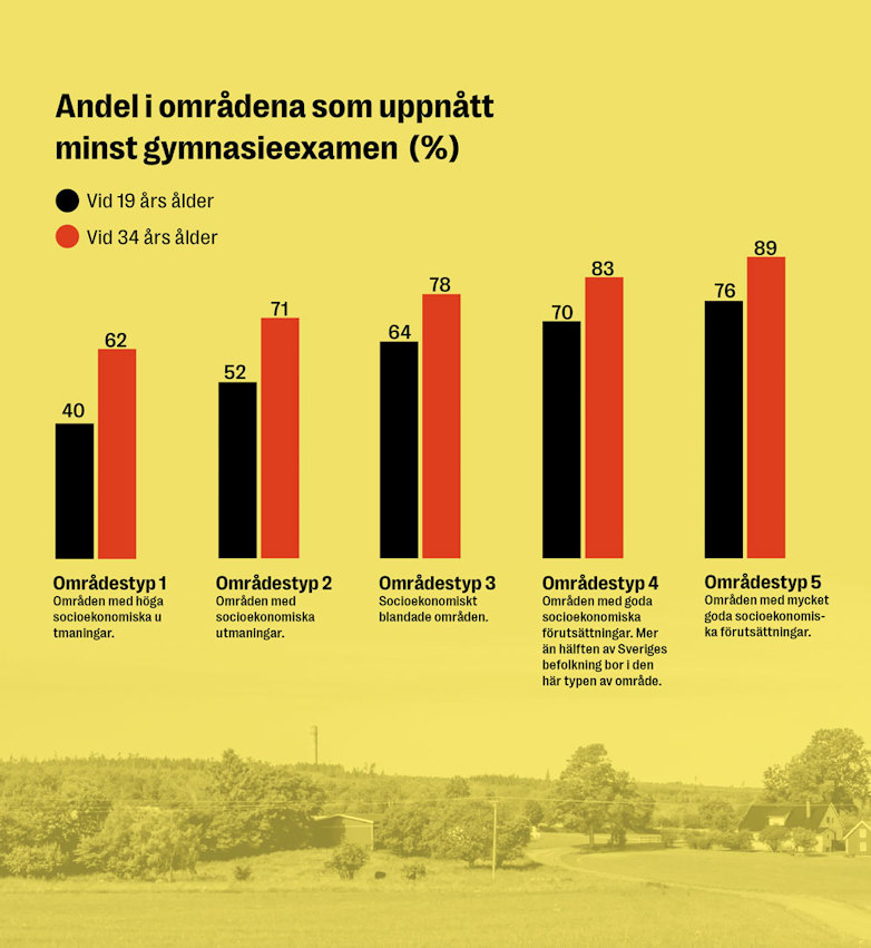 Likvärdighet Sex av tio 19-åringar, bosatta i Sveriges socioekonomiskt mest utsatta områden, slutför inte gymnasiet med en examen, visar nya siffror. Kommunerna försöker med alla möjliga olika medel bryta skolsegregationen – men det är svårt att hitta lyckade lösningar.
