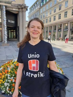 Synnøve Kirkebø, lärare i engelska, franska och religion, en av de strejkande.