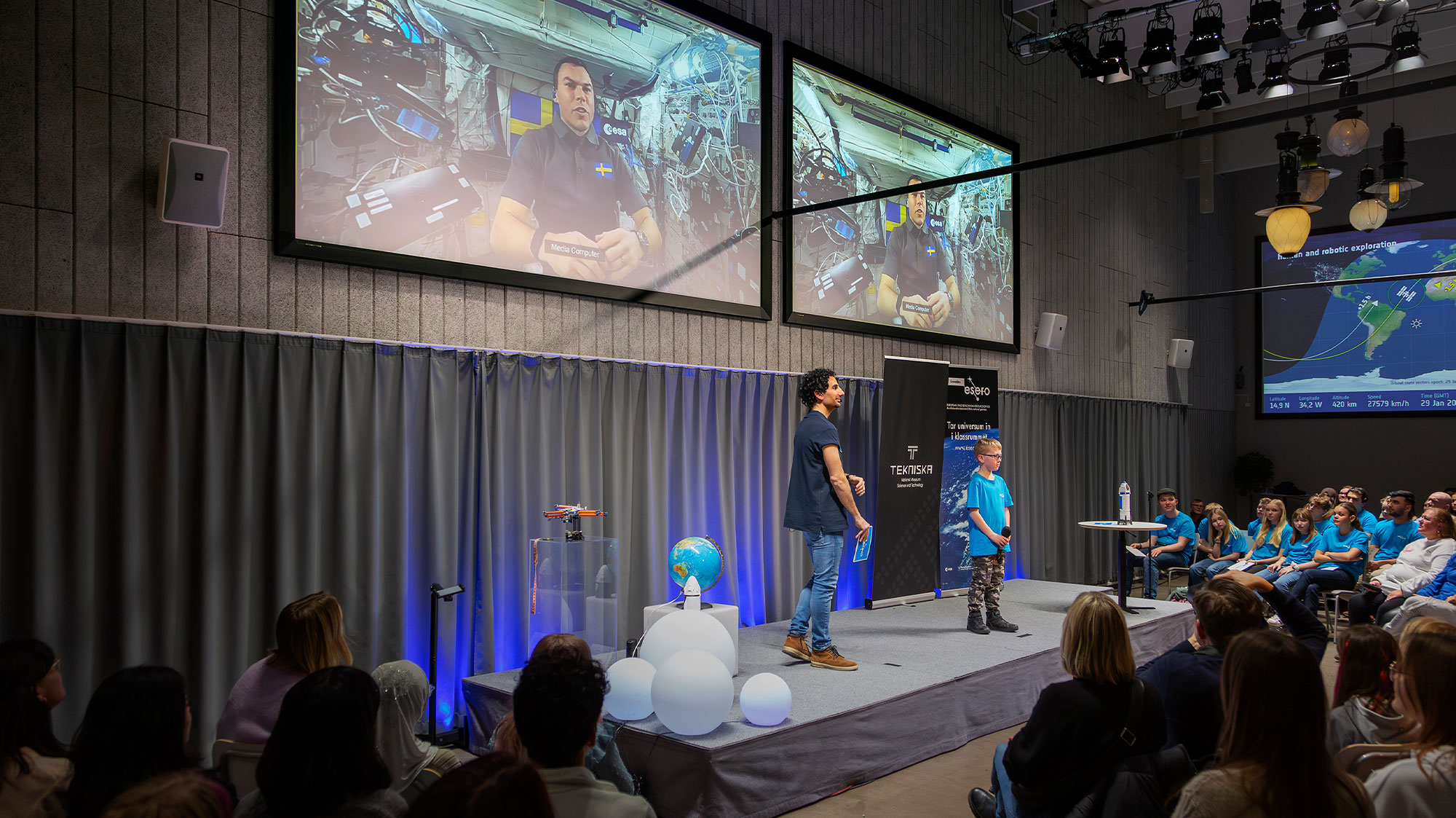 Klockan 14:25 på måndagen kopplade Tekniska museet i Stockholm upp sig mot rymden och den internationella rymdstationen ISS. Runt 200 elever i olika åldrar från hela landet hade samlats för att ta del av frågestunden med Marcus Wandt under tjugo minuter.