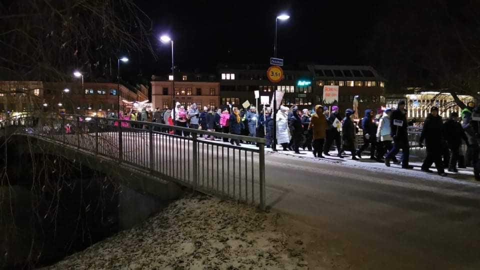 Det blev ett långt demonstrationståg som gick mellan Stora torget i Sundsvall och kommunhuset. Foto:Privat