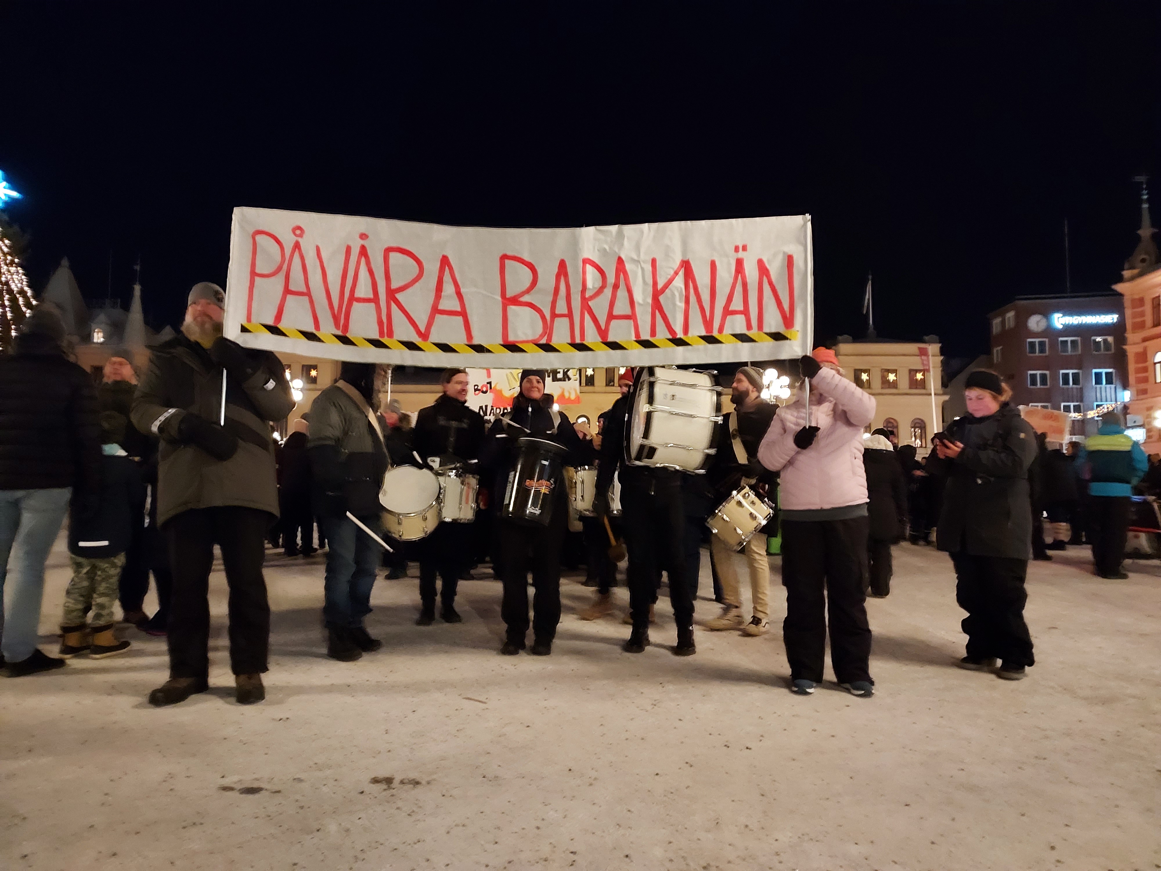 Till taktfasta trumslag från Kulturskolans lärare gick alla därefter tätt i led som en lång orm till kommunhuset. Där talade kommunalrådet Bodil Hansson (S) och Lisa Tynnemark (S), ordförande i barn- och utbildningsnämnden i Sundsvall.