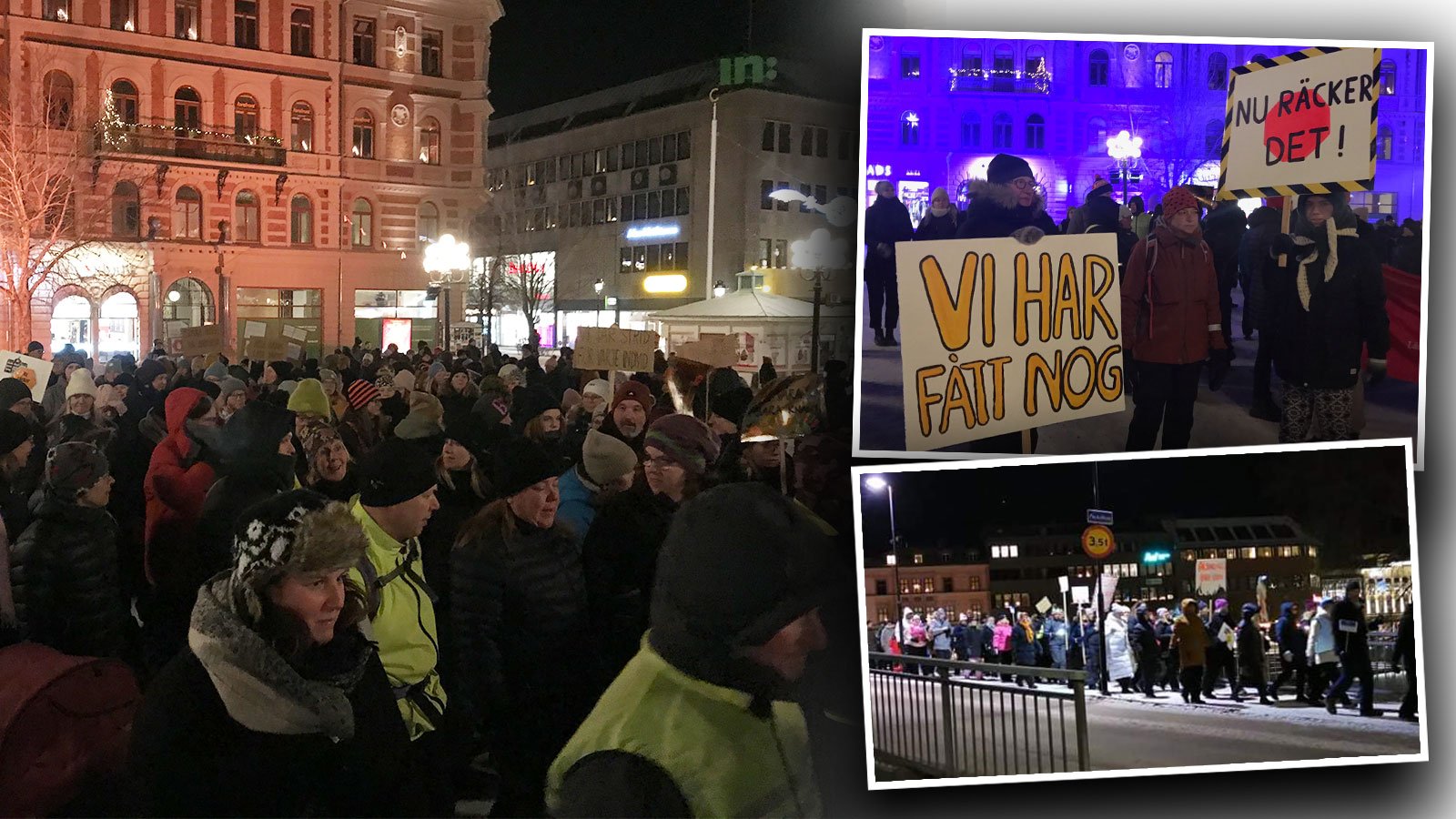 Nu räcker det! Vi har fått nog. Vi orkar inte mer! Budskapen till politikerna var tydliga från de cirka 500 lärare, föräldrar, barn, mormödrar och andra Sundsvallsbor som hade samlats på Stora torget i Sundsvall på tisdagskvällen. Det går inte att spara 95 miljoner på förskola, grundskola och gymnasium under nästa år, anser de.