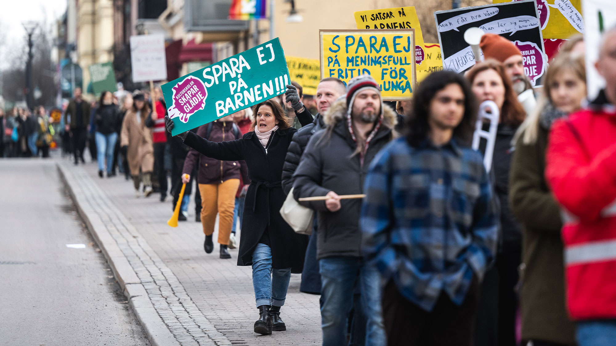 Över 1 000 personer deltog i manifestationen mot nedskärningar i Karlstad. Foto: Fredrik Karlsson/Bildbyrån