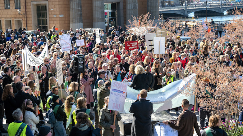Enligt polisens beräkningar samlades 2 500 personer till manifestationen i Stockholm den 6 maj. Foto: Sven Lindwall
