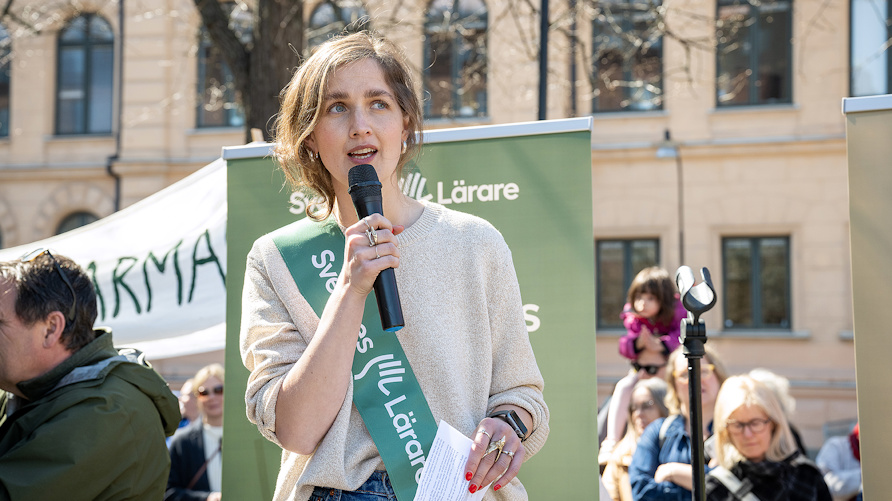 Hanna Garberg, en initiativtagarna till manifestationen i Stockholm, uppmanar lärarkollegor att visa sitt missnöje och sin frustration ute i landet.