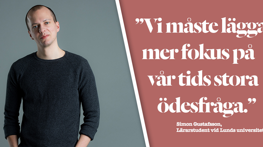 – Jag skriver mitt examensarbete nu, om lässtrategiundervisning och klimatdidaktik. För arton år sedan slogs i en statlig rapport fast att Sverige skulle bli ett föregångsland inom undervisning för hållbar utveckling. I dag kan man, med mig själv som exempel, gå en hel lärarutbildning utan att klimatfrågan på något sätt tas upp, i varken undervisning eller kurslitteratur. Om vi menar allvar med att vilja rusta eleverna för framtiden måste vi lägga mer fokus på denna vår tids stora ödesfråga. Det är ett komplext och mångfacetterat problem som kan tacklas i alla ämnen, och som jag menar kan göra demokratiuppdraget konkret och angeläget. Jag skulle vilja se att det lyfts fram betydligt mycket mer i läroplaner, skollag, lärarutbildningar, utbildningsvetenskaplig forskning och skolor på alla nivåer.
