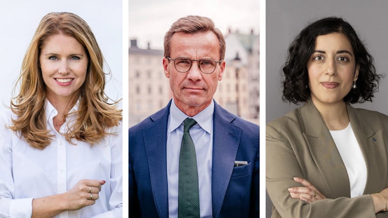 Josefin Malmqvist (M), skolpolitisk talesperson, Ulf Kristersson (M), statsminister, Simona Mohamsson (L), utbildningsminister.