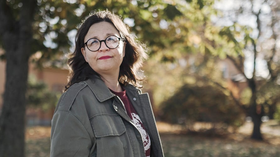 Anna Ekström går med lätta steg i vita promenadvänliga skor och störs inte av att rullväskan då och då rycker till när orangefärgade löv följer med från asfalten och lindar sig runt hjulen. En lila tröja med tryck från Chalmers skymtar under den uppknäppta höstjackan.