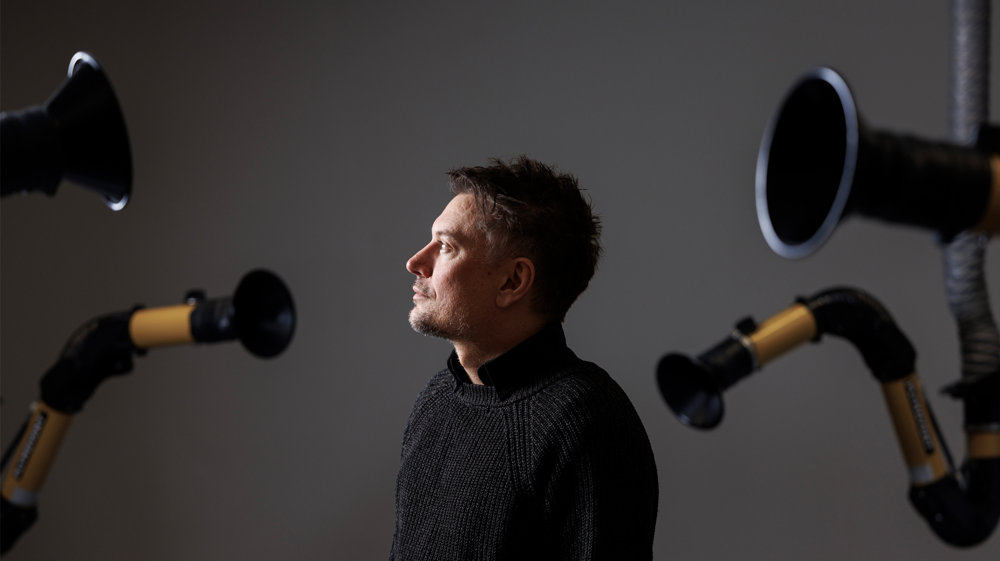 – Jag talar om att den här högtalaren nu kan få en spole att röra sig nära en magnet. Högtalaren fungerar som en mikrofon. Nu har vi både en mikrofon och en högtalare framför oss, byggda på exakt samma fysik.