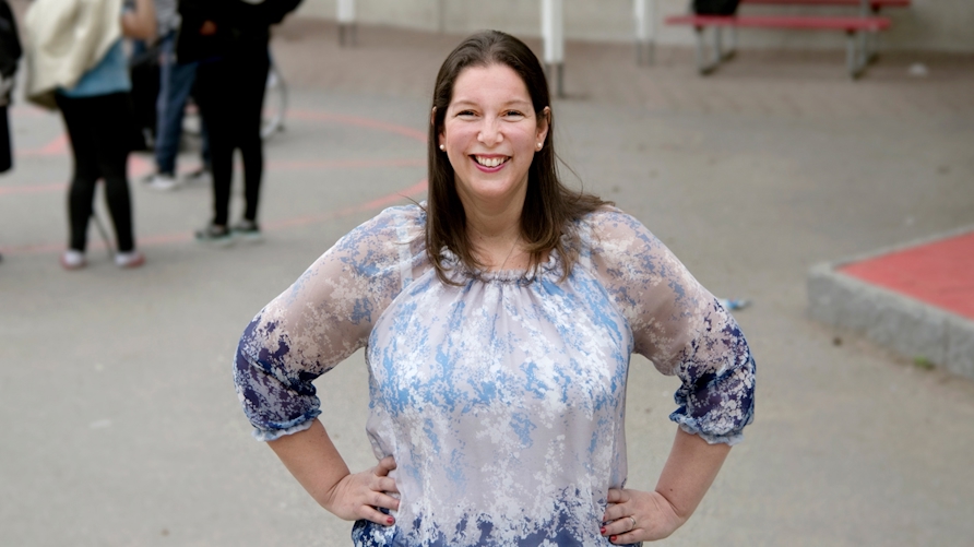 Efter 20 år som lärare på skolan vet alla vem hon är och hon känner såväl syskon som föräldrar till eleverna.