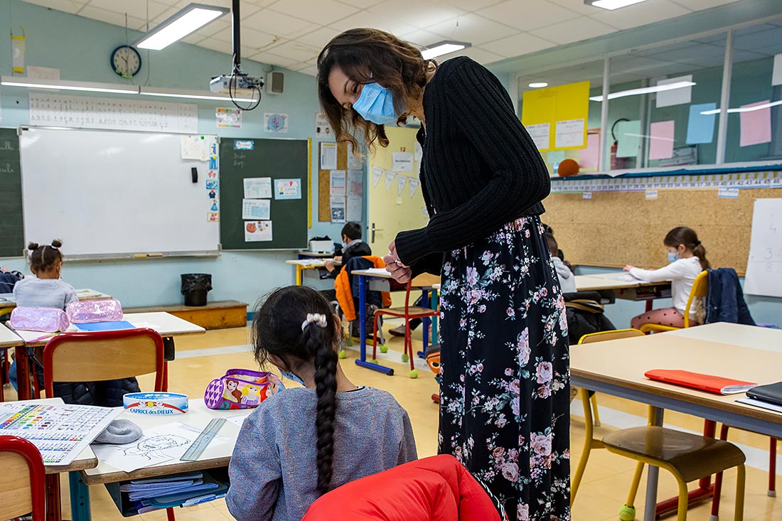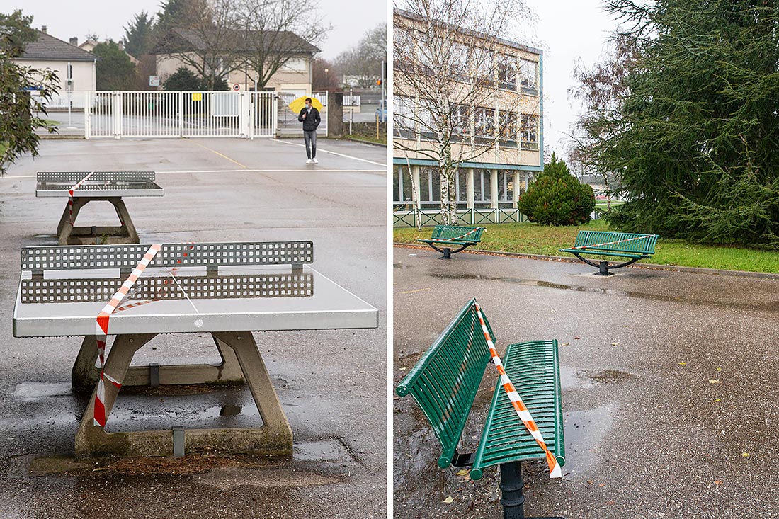 Ecole de la Seille ligger i ett utanförskapsområde. Precis som i Sverige har antalet covidfall varit fler i arbetarkvarter än i välbärgade bostadsområden, vilket främst förklaras med trångboddhet och att en hög andel invånare inte kan arbeta hemifrån. Men under hela hösten har skolan här inte haft några smittade varken hos personalen eller eleverna. Det kan bero på att just det här kvarteret har förskonats från större kluster, men Delphine Lebrun tror också att det beror på att skolan till punkt och pricka följer alla rekommendationer.