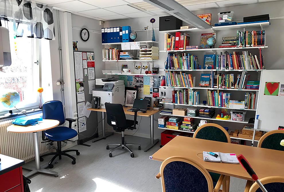 Lektionerna sker ofta vid sjuksängen, men Andreas har också ett kontor, dit eleverna kan komma. Foto: Nicke Johansson