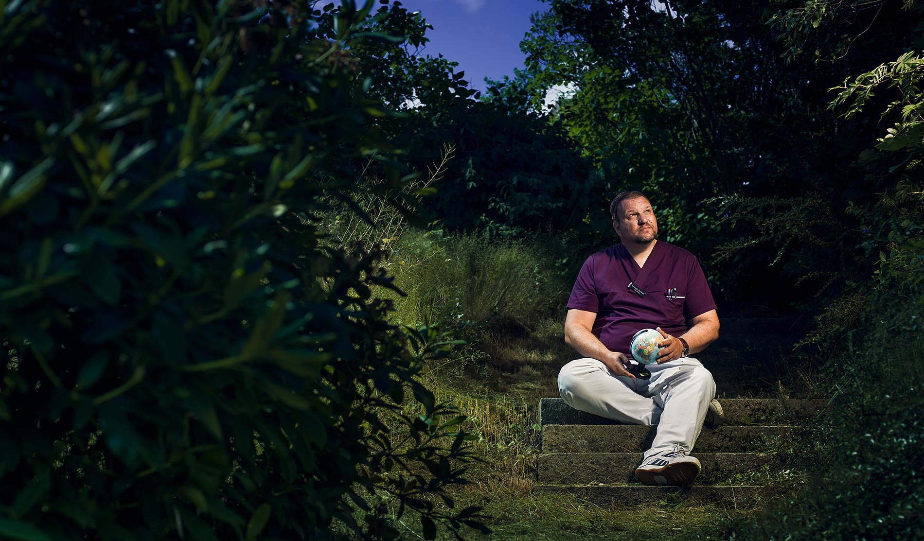 När han väl kom tillbaka efter det han kallar för både en time out och en dikeskörning, bytte han arbetsplats till Sahlgrenska universitetssjukhuset ett skruvat stenkast från Slottsskogen i Göteborg.