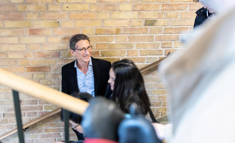 Stöttning i korridorerna är en stor del av arbetet, men Peter Vig håller även lektioner. Foto: André de Loisted