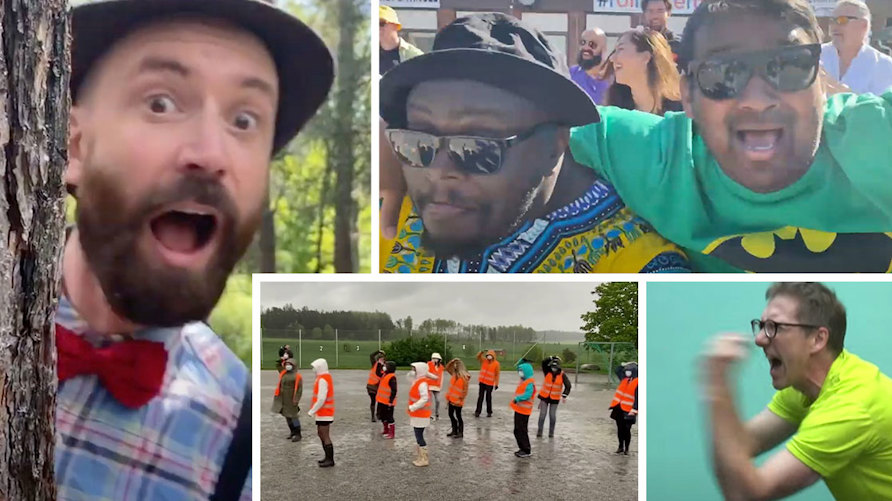 Lärare och personal på Nyköpings folkhögskola bjuder på en välkoreograferad Jerusalema-dans