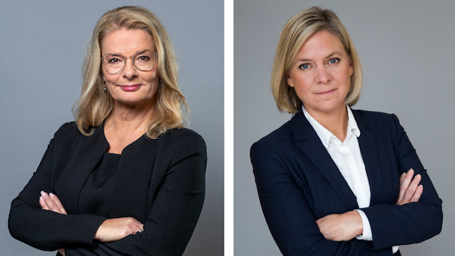 Skolminister Lotta Edholm (L) och Socialdemokraternas partiledare Magdalena Andersson.