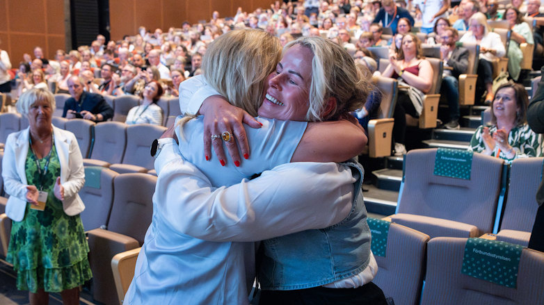 Anna Olskog gratuleras efter att ha blivit vald till ny ordförande för Sveriges Lärare.