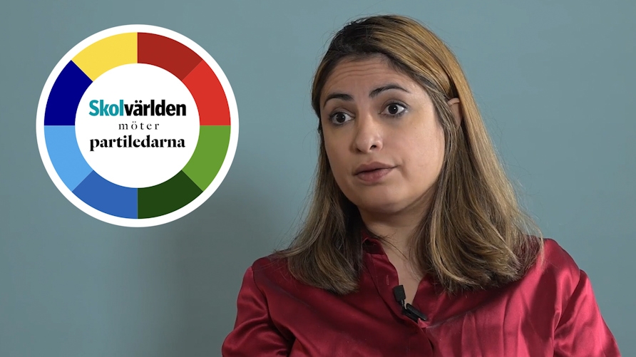 – Vi vill att lärare och rektorer ska vara statliga tjänstemän, inte vd:ar och försäljare, säger partiledaren Nooshi Dadgostar i Skolvärldens webb-tv-intervju.
