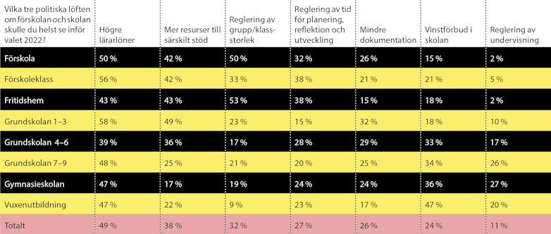 Så här prioriterar Sveriges lärare de olika skolfrågorna inför valet 2022.