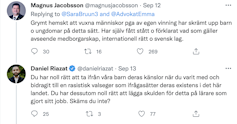 Magnus Jacobssons (KD) och Daniel Riazats (V) kommentarer.