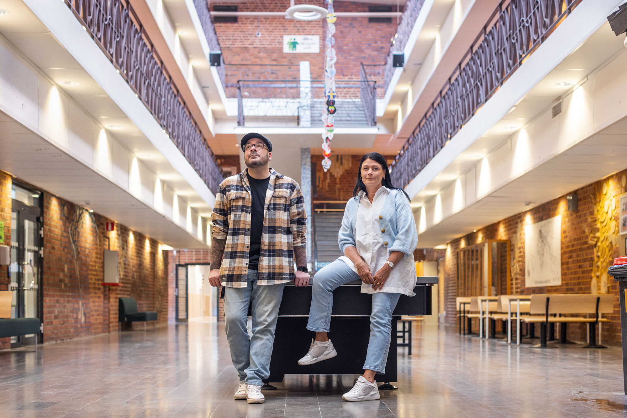 Innan säkerhetsstrategen Brandon Wade måste hasta vidare går vi ner till skolans hjärta, ljushallen med kanske tolv meters takhöjd, där många elever samlas och där trappor leder upp till olika våningar. Maria Stadshall känner oro inför den här platsen om en PDV skulle inträffa.