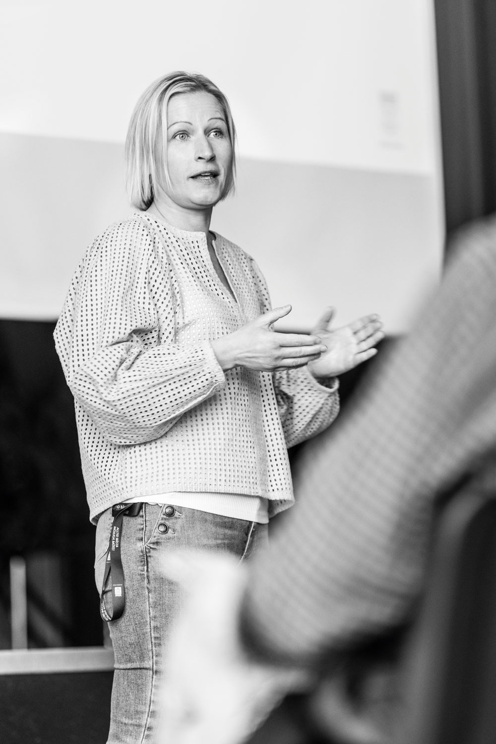 En av 40-talet lärare i publiken uttrycker sin uppskattning över uppmaningen: