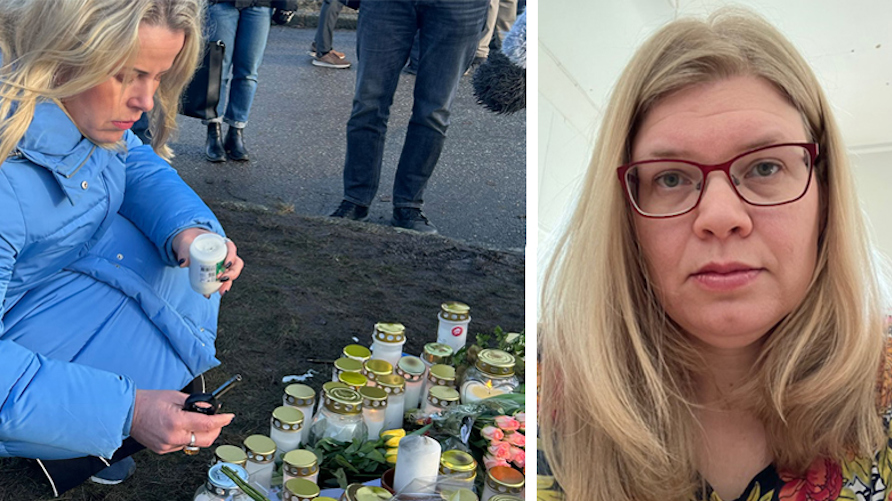 Till vänster: Sveriges Lärares ordförande Anna Olskog i Örebro dagen efter masskjutningen. Till höger: Linda Claremar, SFI-lärare.