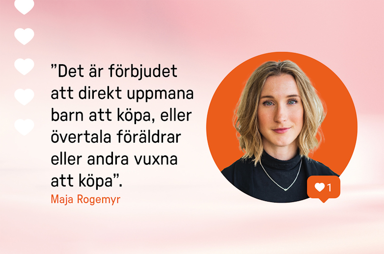 – Det är förbjudet att direkt uppmana barn att köpa, eller övertala föräldrar eller andra vuxna att köpa, den marknadsförda produkten, säger Maja Rogemyr.
