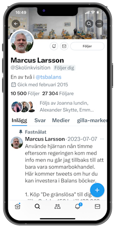 Marcus Larsson, @skolinkvisition på X (före detta Twitter), har över 27 000 följare.