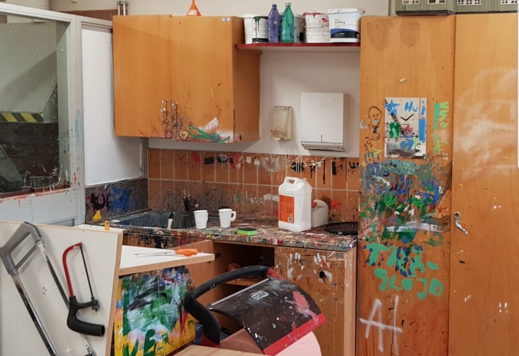 "Jag förstår inte hur man kan hamna i den här situationen. Ska du exempelvis slipa på en slipskiva med färg på, då funkar inte slipningen. Svårare än så är det inte", säger Bernt Richloow, huvudskyddsombud för Lärarförbundet, som tagit den här bilden.