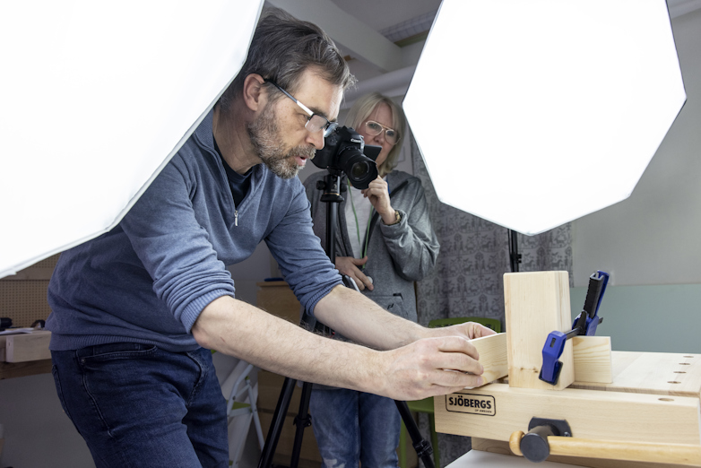 Just nu arbetar han med en film om hur man gör en fogning med genomgående plugg, i stället för en spik eller skruv. Och som kan användas för att göra en låda, exempelvis.