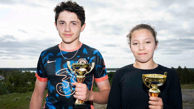 Lindor Redzepi och Amelia Lopez får varsin pokal för att de kommit först i MClimb.